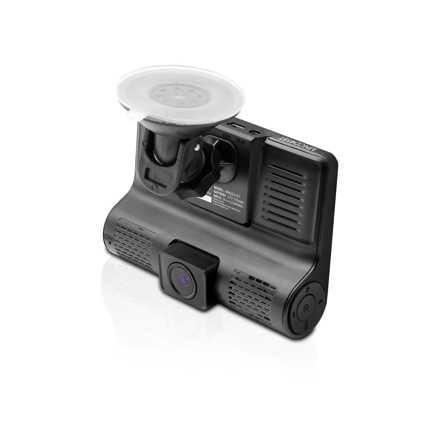 Remember all of your road-trips with the MNCD415T. Featuring a high resolution 170 degrees lens, 1080P video, High Dynamic Range, Photo Stabilization and a 12MP photo resolution for perfectly clear footage. Review your footage on the 4” High-resolution LCD Screen. Emergency footage automatically begins recording thanks to the built-in G-sensor. The integrated inside camera, records the inside of your vehicle and the included wired rear auxiliary camera shows the road behind you.