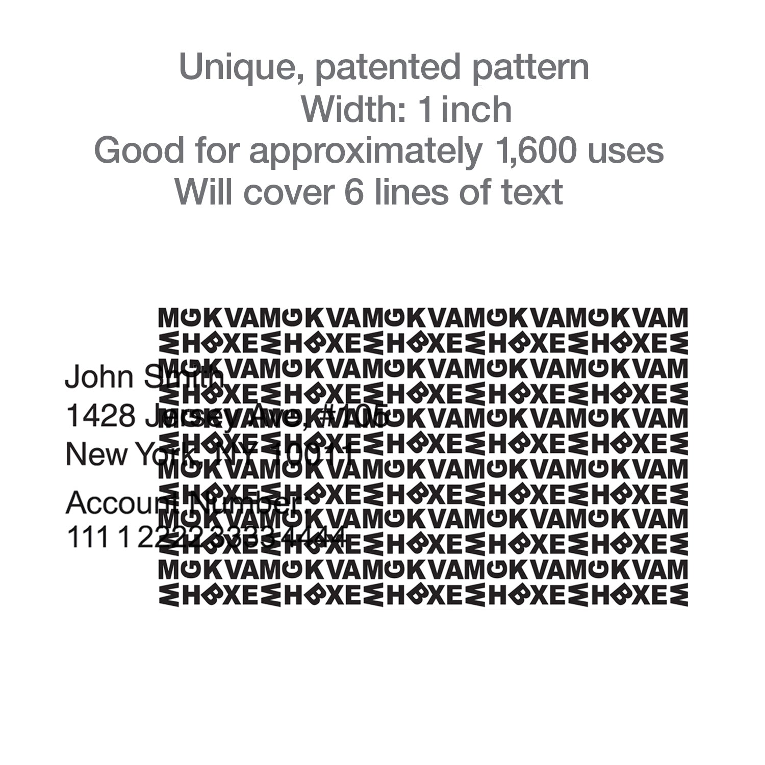 Pattern Width: 1 inch / Will cover six lines of text at a time.