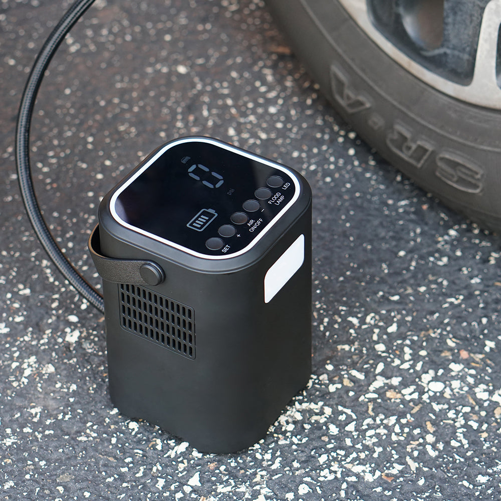 NEVERGOFLAT™ - your ultimate all-in-one emergency tool. This powerful device combines a high-performance air compressor, emergency lighting, and a reliable power bank, ensuring you're prepared for any situation. Its compact, portable, and sturdy design allows you to carry it effortlessly wherever you go. Plus, all the necessary accessories come included with the product, ensuring a seamless and hassle-free experience. Stay confident and ready with NEVERGOFLAT™ by your side.
